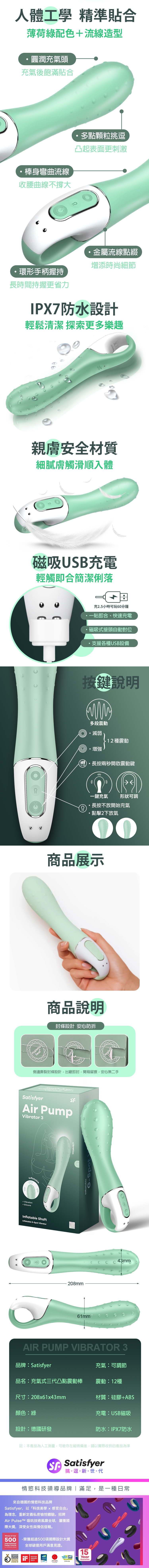 品名:Satisfyer|Air Pump Vibrator 3|充氣式凸點震動按摩棒 綠